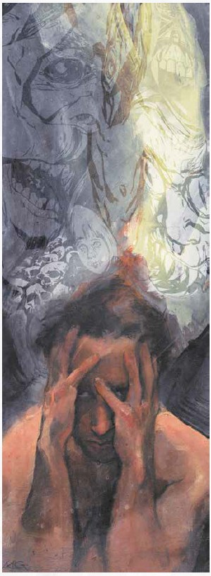 Sistema: El Malkavian debe tener toda la atención del objetivo durante al menos un turno para poder emplear este poder. El jugador gastará un punto de sangre y tirará Manipulación + Intimidación (la dificultad es la Fuerza de Voluntad de la víctima). Si tiene éxito, el objetivo se verá afectado por cinco Trastornos de la elección del Narrador. El número de éxitos determina la duración.